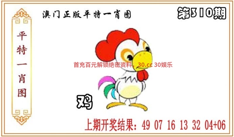 306期:凶美两肖凶丑+鸡蛇开:牛17准